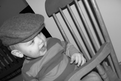 Going through Landon's clothes I found this cute little hat that he never wore and thought it was probably to small already. I put it on and it fit, so we had a cute little photo session. Doesn't he look like I locked him up! The stripped shirt was purely coincidental.